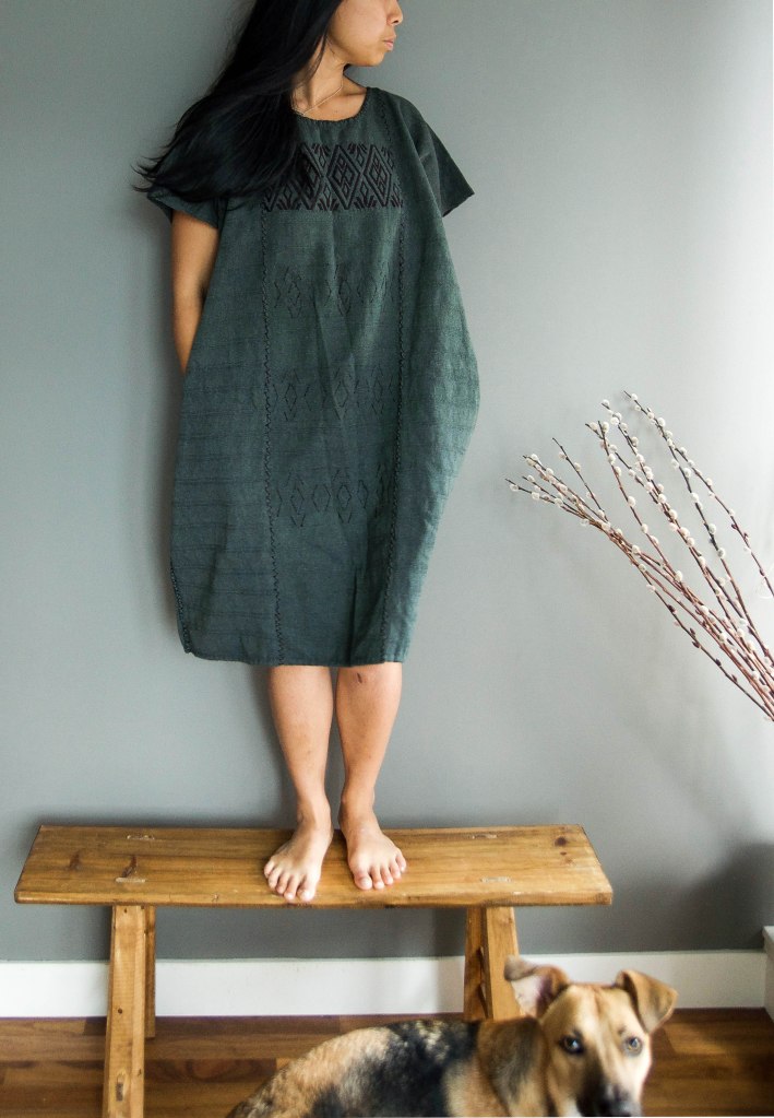 The most recent place I shopped at was Community Thrift, the one next to Nelson the Seagull. I love this place so much. Every time I go there, I buy something. But they are fibre oriented, which I love. So, they’ll have a section of linens, cashmere, like they understand, to me that is a person who understands how to sort through clothes. I used to love thrifting in college, but now I can’t stand it, for example, going into Value Village with the smell and having to look through so many racks of stuff. I love going to Community for that. However, I find that many of my clothes are from Mexico.