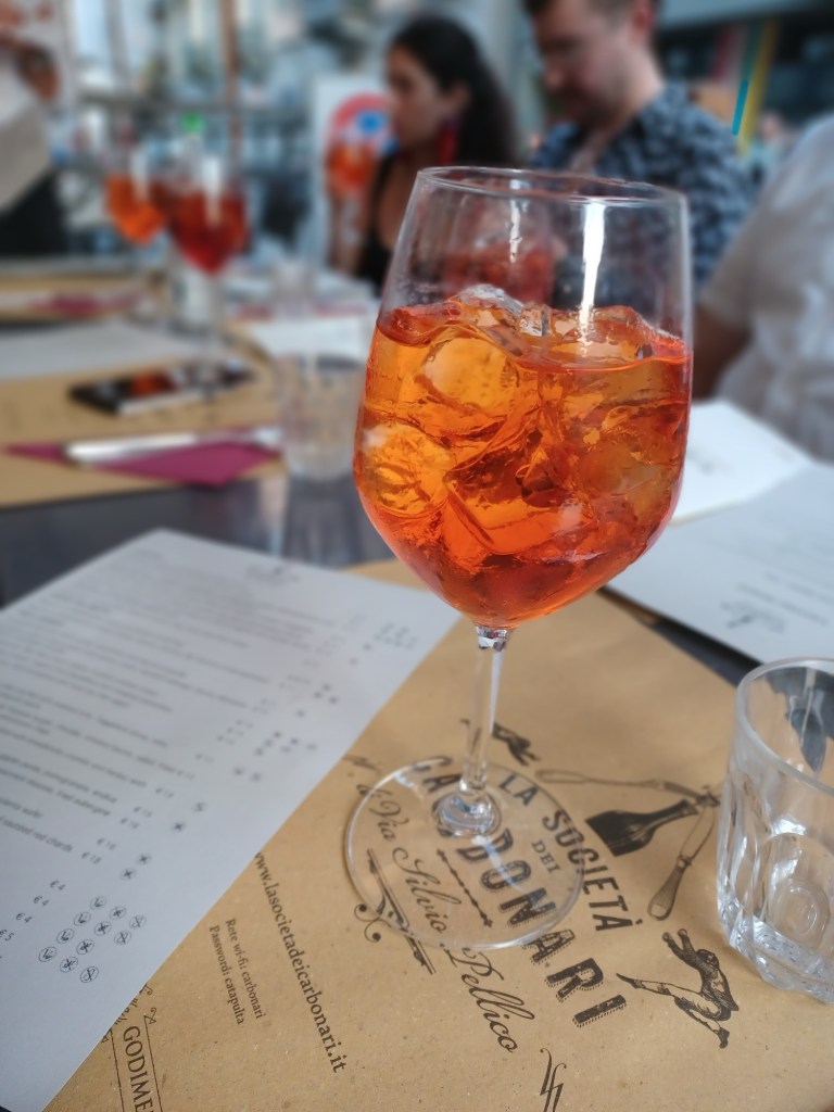 Common sense: General notes on Apertivo culture. Enjoy an Aperol or Campari spritz, but avoid the big piazzas and squares. They are super touristy and overpriced. Instead, wander the side streets and grab a spot in a pedestrian-heavy area to people-watch with a spritz.