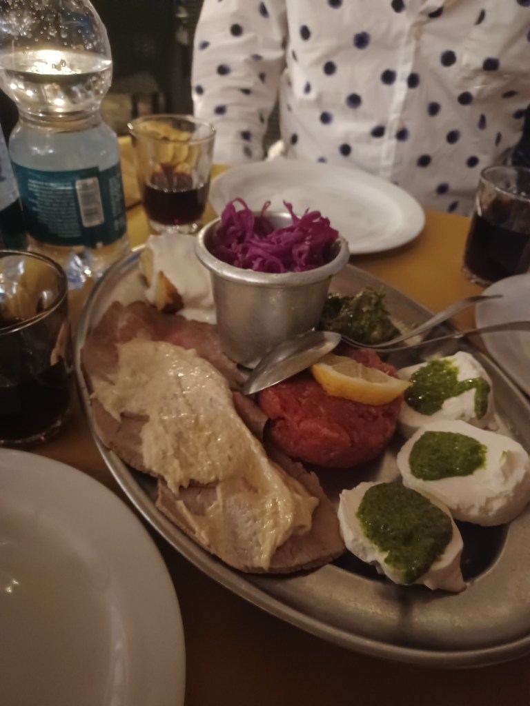 La Societe die Carbonari—This restaurant came recommended, but it showed me that the best local restaurants are the cozy hole-in-the-wall spots. So be open to strolling and stumbling upon restaurants and bars on side streets. If the weather permits and there is space, sit on the terrace. The food and wine were fantastic. You can expect generous portions and a great selection of meat, pasta, and fish dishes.