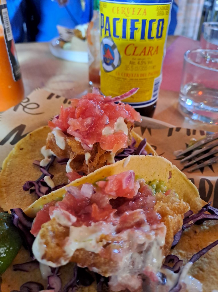 Madre -You can expect popular Mexican dishes at Madre. They suggest ordering to share, which is a great way to sample their full menu. Tacos are a must, the avocado was an interesting twist and the Baja is always a favourite. A Pacifico is always a good way to wash down the tacos, but maybe opt for their mezcal margarita.