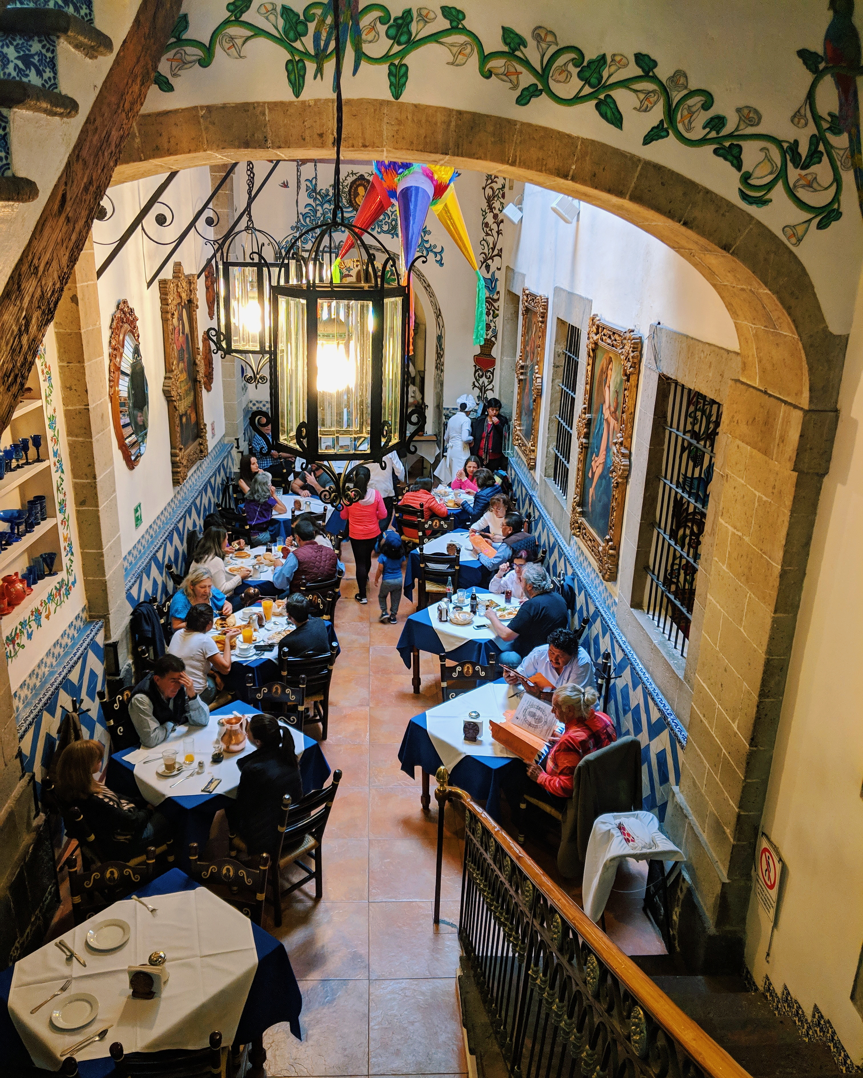 Cafe de Tacuba is a dining institution that has been around since 1912. You can find it nestled in a brick building on Calle Tacuba. The restaurant contains traditional Mexican art, ceramics, and decor peppered with religious art throughout. The stunning two-floor restaurant boasts a beautiful wooden staircase that gives you a bird’s eye view of the restaurant. The food is traditional Mexican, so dig in for significant portions and multiple courses.